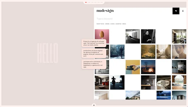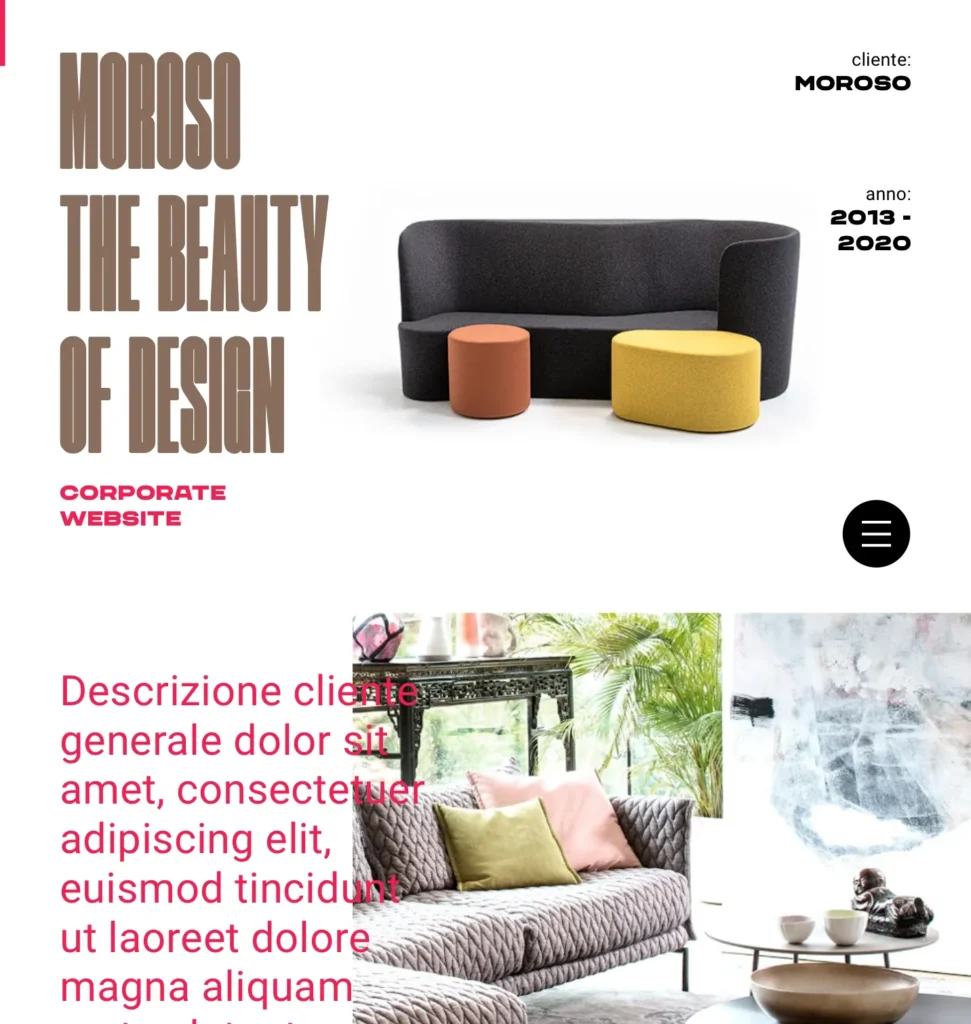 By the end of April, in one of the first post-pandemic “in-person” meetings in the office, I meet with Elena, our art director, and Matteo, our most skilled frontend, to share my ideas. Two weeks later Elena returns to the lab with a very nice and modern looking layout, a flamboyant typography dancing with curtains.js in the usual WordPress + Barba.js plexus: i’m not satisfied though. As beautiful and modern as it was, it’s not the right direction. Heck, it’s not their fault.